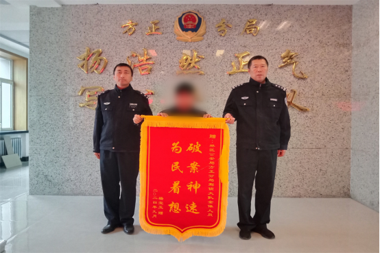 楊先生手持錦旗對(duì)民警表示感謝。 圖源:黑龍江省林區(qū)公安局方正分局