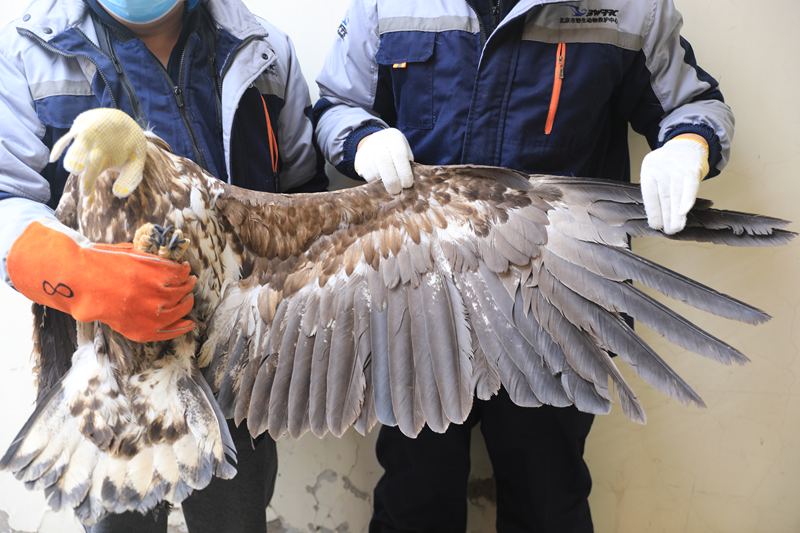 為了確保它能重新適應(yīng)野外生存環(huán)境,當(dāng)年1月31日起,該白尾海雕轉(zhuǎn)入救護中心的大型猛禽訓(xùn)飛籠舍,在低人為干擾的環(huán)境中進行飛行和自主覓食等放歸前的適應(yīng)性行為訓(xùn)練。經(jīng)過兩周的“特訓(xùn)”,救護中心評估認為該白尾海雕已具備放歸野外的條件。最終,于當(dāng)年2月17日成功在懷柔水庫實施放歸。