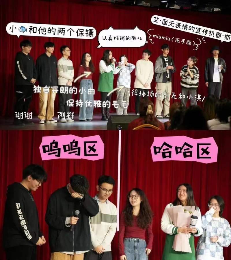 然而,綜藝節(jié)目并非是小魚與脫口秀結(jié)緣的起點。早在2021年,他就參與創(chuàng)建了趣聽,并在兩年后憑借出色的表演能力出任社長,是社團當之無愧的元老級人物。開放包容的校園氛圍鼓勵他認真發(fā)展起童年時期的愛好,社團內(nèi)豐富的鍛煉機會和便利條件為他提供了喜劇水平快速提升的土壤。