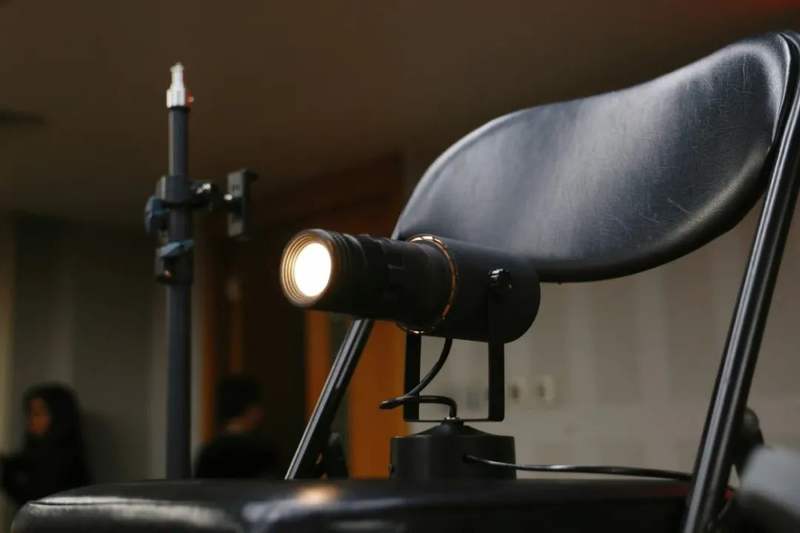 進場的時候,所有人都在囑咐小心地毯上那根電線。長長的電線連著被層層架起的射燈,光線延伸向房間前側(cè)的中心,那是在場無數(shù)目光投射的終點。