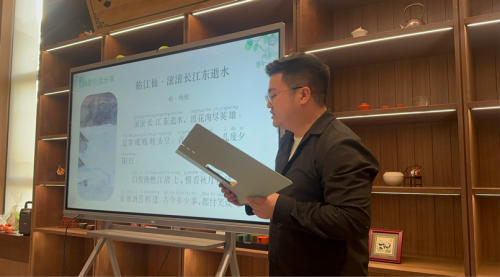4月18日晚,由金牛區(qū)總工會、共青團金牛區(qū)委、金牛城投集團聯(lián)合主辦的在“詩歌中尋找生活的復(fù)調(diào)”詩歌共讀會在金牛區(qū)錦賓國際酒店茶客空間成功舉辦?;顒右悦鞔鷹钌鳌杜R江仙·滾滾長江東逝水》開篇,帶領(lǐng)現(xiàn)場20余名青年職工開啟了一場穿越時空的詩意對話。