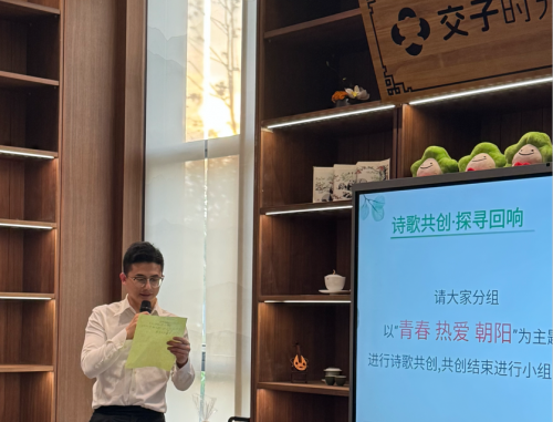 活動高潮是圍繞"青春·朝陽·希望"主題的現(xiàn)場創(chuàng)作環(huán)節(jié)。兩組青年在15分鐘內(nèi)完成集體創(chuàng)作,"我們是新時代的浪花,奔涌在金牛的熱土上",“當(dāng)銀杏葉開始校對時間,茶店子的棋局剛擺到中盤,而國際商貿(mào)城的二維碼,正把千年蠶市,掃成青春的新封面。” 等詩句,展現(xiàn)了當(dāng)代青年對傳統(tǒng)文化的創(chuàng)新詮釋。
