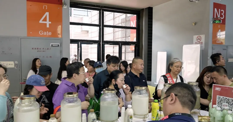 試飲區(qū)同樣人頭攢動(dòng),熱鬧非凡,黑豆豆乳濃醇風(fēng)味與鮮榨玉米汁自然鮮甜,引得參展嘉賓、客商駐足品嘗。