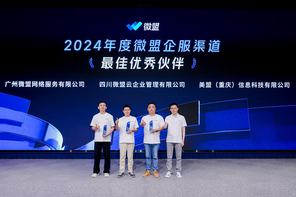 大會尾聲的授牌與頒獎環(huán)節(jié)既是對優(yōu)秀服務(wù)商的表彰,也是渠道生態(tài)協(xié)同的縮影。其中,廣州微盟網(wǎng)絡(luò)服務(wù)有限公司、四川微盟云企業(yè)管理有限公司、美盟(重慶)信息科技有限公司獲評2024年度微盟企服渠道最佳優(yōu)秀伙伴獎。