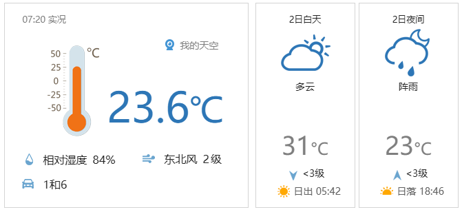 今日限行尾號1和6。未來三天以多云為主,濕度較大,午后體感較悶熱。