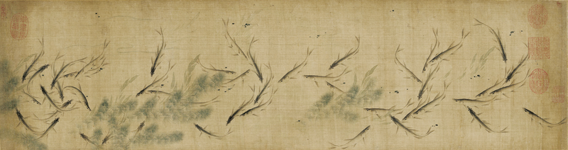 試拈起《藻魚圖》來一消人世忙迫塵勞:在忙迫不堪的美利堅(jiān)合眾國中,我在紐約的大都會藝術(shù)博物館見到了南宋趙克敻的一開冊頁,那幾條倏忽來去的白條魚真畫得動態(tài)宛然,人若能如此來去自如,便是大自在菩薩了!