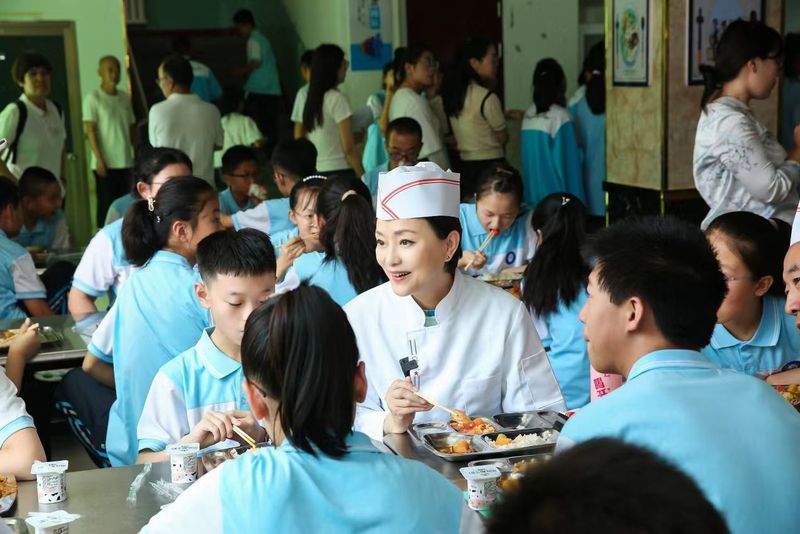 2024年,楊瀾在“擁抱·鄉(xiāng)村美育計(jì)劃”活動(dòng)中變身“食堂阿姨”。 受訪者供圖