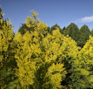 少花粉彩化側(cè)柏新品種“金冠1號(hào)”(春季)。受訪者供圖