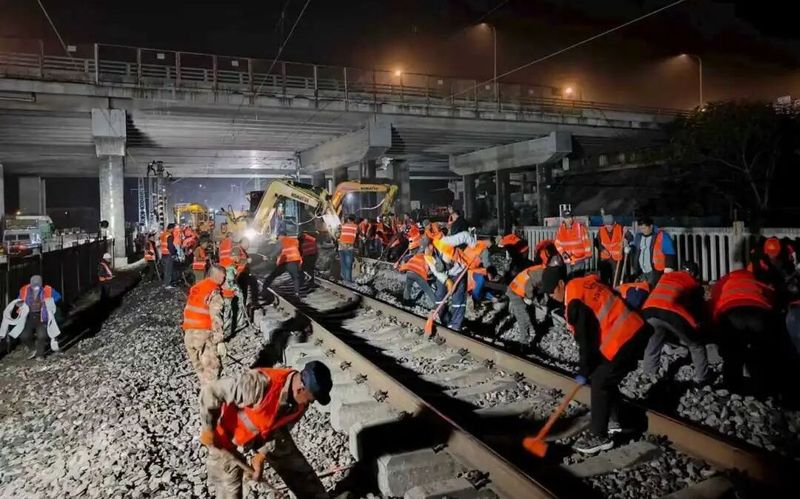 本次便線回?fù)苁┕ど婕熬V鐵路雙線1.21公里,撥線總長(zhǎng)度達(dá)701米,最大撥距3.4米。北京工程項(xiàng)目管理部統(tǒng)籌協(xié)調(diào)部署、強(qiáng)化安全管控,各單位協(xié)同配合,上千名作業(yè)人員高效完成線路回?fù)芗芭涮自O(shè)備調(diào)試,保障施工在240分鐘規(guī)定時(shí)間內(nèi)按時(shí)完成,未影響后續(xù)列車正常運(yùn)行。