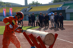 在技能展示交流環(huán)節(jié),各支隊伍圍繞個人、雙人及團體三大類科目進行展示交流。個人全能科目交流中,男隊員們需連續(xù)完成快速著裝、暢通疏散通道、滅火器滅火及兩盤水帶連接等一系列高難度動作,充分考驗了個人的綜合業(yè)務能力。