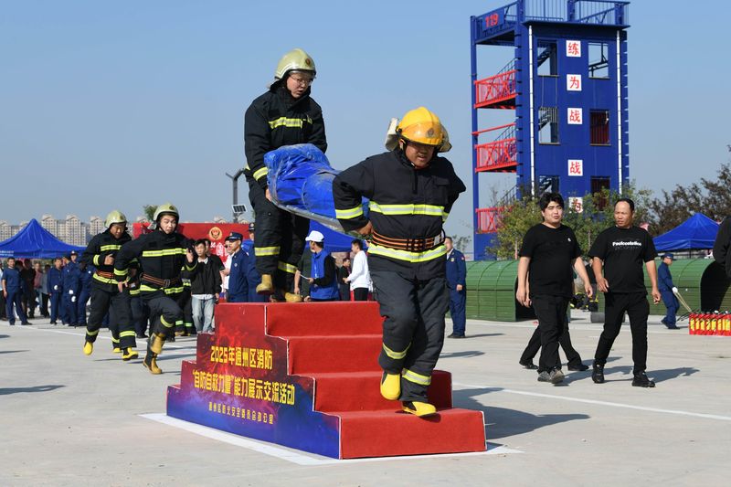 新京報訊(記者張靜姝)10月13日下午,北京通州舉辦2025年通州區(qū)消防自防自救力量能力展示交流活動。來自全區(qū)各街道、鄉(xiāng)鎮(zhèn)的22支代表隊、共計400余名專兼職消防隊員展開了一場技能與意志的精彩較量。