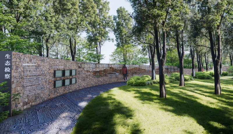 生態(tài)檢察主題公園位于懷柔濱河森林公園南門附近,利用800余平方米空間緊扣“法治護航生態(tài) 檢察守護家園”主題進行建設(shè),集生態(tài)保護宣傳、檢察職能展示、公眾互動體驗、休閑娛樂為一體。