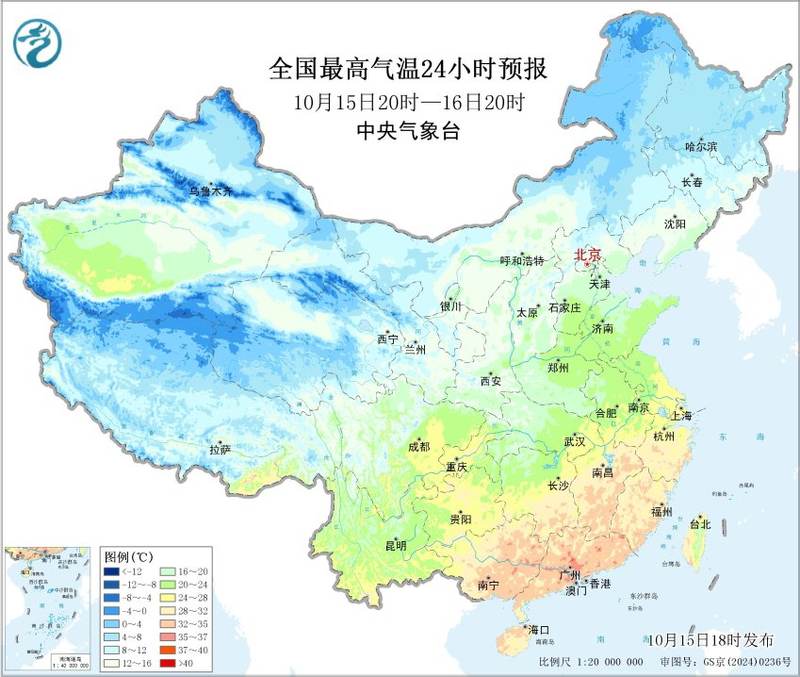 全國最高氣溫24小時預(yù)報(bào)圖。中央氣象臺供圖
