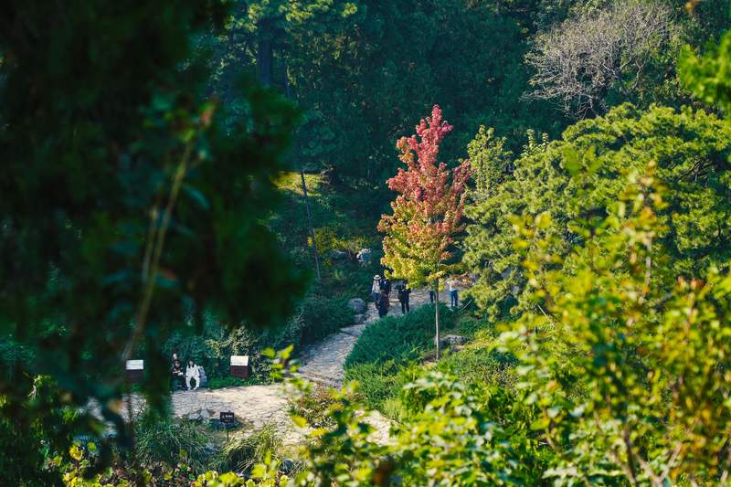 18處點位中有10處位于建筑周邊,游客可置身景中,感受人文與自然的交融,也可遠眺借景,欣賞層次豐富的秋日畫卷。公園將通過微信、微博等平臺每周解鎖3至5處最佳觀賞點位,便于游客精準鎖定。