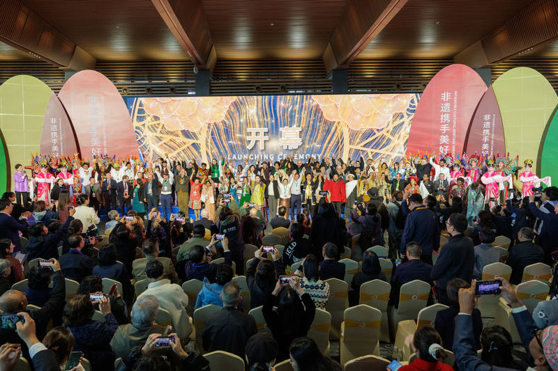“非遺風(fēng)華·綻放生活”開(kāi)幕式以“風(fēng)·雅·頌”為敘事主線,匯聚多個(gè)人類(lèi)非遺代表作名錄項(xiàng)目及各國(guó)傳統(tǒng)音樂(lè)舞蹈表演。