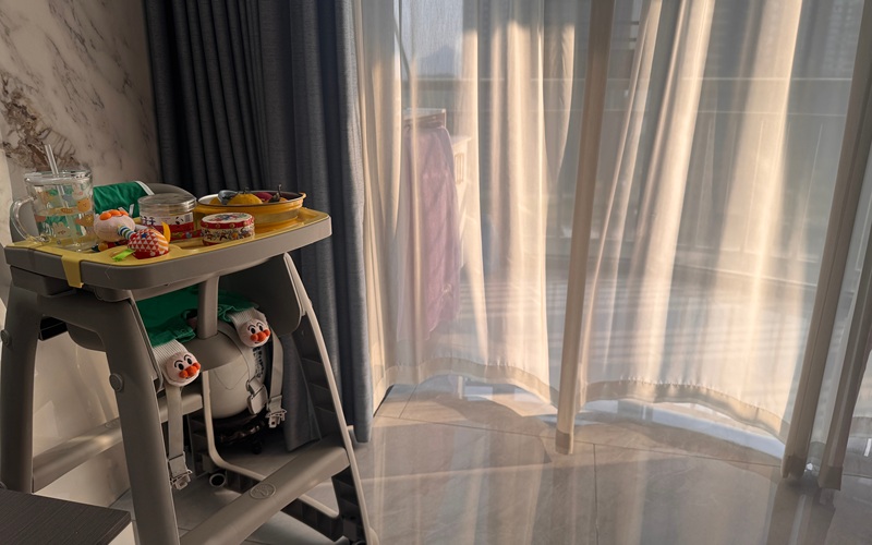 被害人胡某家中,寶寶椅仍擺放在客廳。新京報記者 熊麗欣 攝