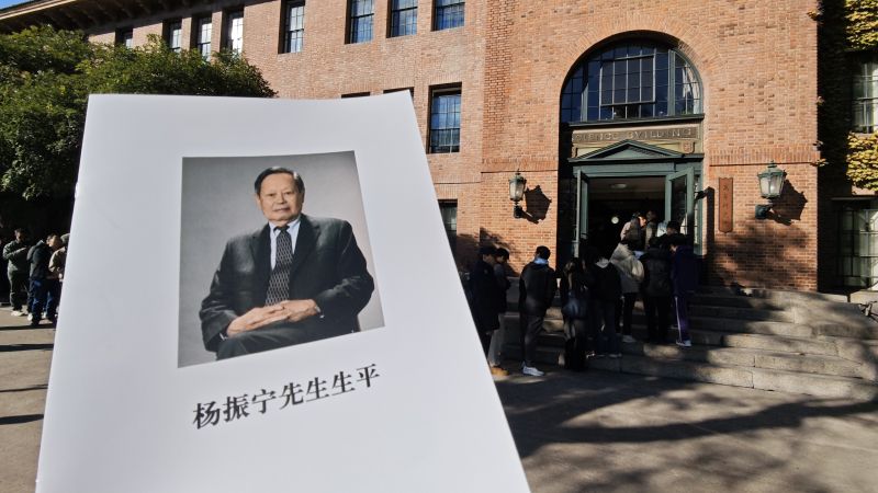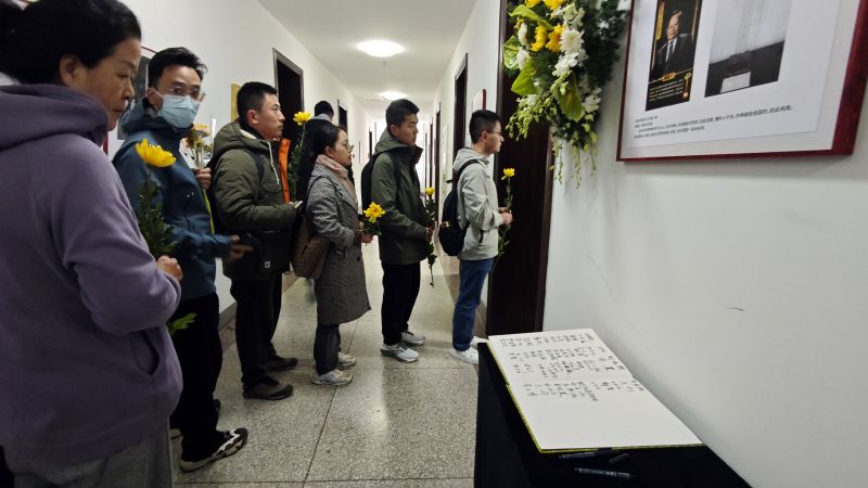 10月19日,人們專程來到清華大學(xué)吊唁楊振寧先生。清華大學(xué)高等研究院科學(xué)館一樓119房間設(shè)立楊振寧先生緬懷室,于2025年10月18至24日期間,接受各界友好人士吊唁。