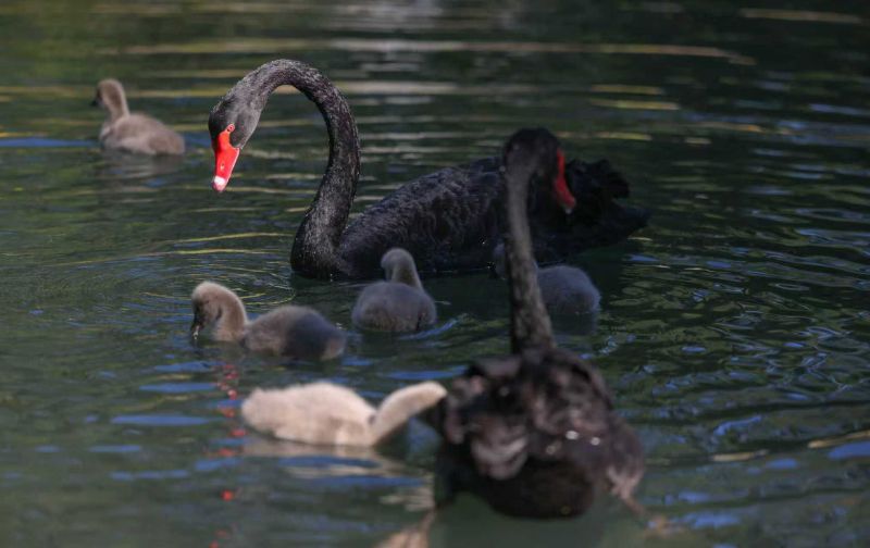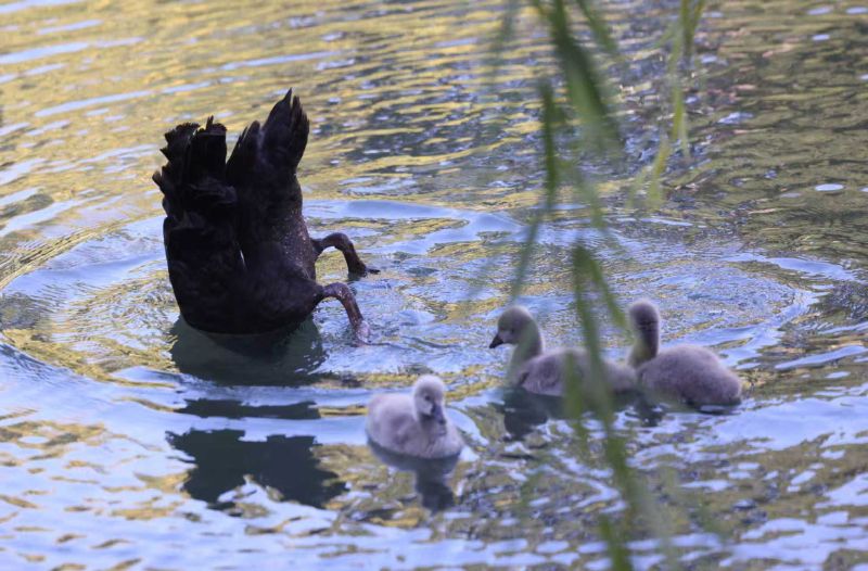 清華園迎來六只黑天鵝寶寶
