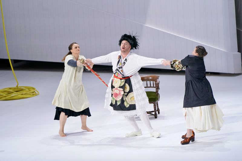 舞臺的主體是一座極簡純白色立方體空間:它既是沃采克思緒的容器,也是一座解剖人性的社會實驗室。正如設(shè)計師薩米所言,在這個純白空間里,“無論何種事物置于其中,都會被充分暴露并凸顯出來”。