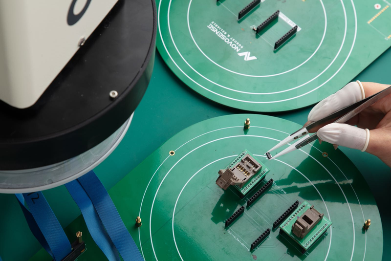 正在納芯微實(shí)驗(yàn)室中進(jìn)行測(cè)試的模擬芯片