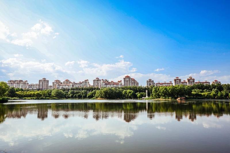 與水脈相呼應(yīng)的,是半城綠意——豆各莊生態(tài)空間覆蓋率已突破50%。自2017年馬家灣濕地亮相以來,26萬平方米水域與45萬平方米景觀交相輝映;近年來,伴隨“花園城市”建設(shè)加速,大小公園、花園式社區(qū)如雨后春筍般涌現(xiàn),水脈與綠脈相依相伴,人居與自然交融成景,“推窗見綠、鄰水而居”的美好愿景在這里落地生根。