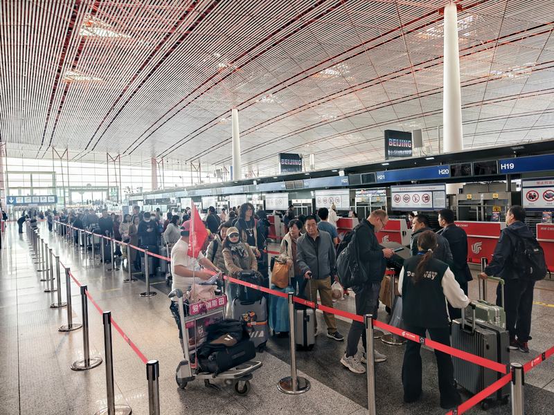 10月23日,首都機(jī)場旅客正在辦理值機(jī)手續(xù)。新京報(bào)記者 陶冉 攝