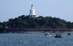 北海公園采用立體花壇再現(xiàn)了消逝百余年的大佛殿,不少游客在此拍照打卡。新京報記者 張璐 攝