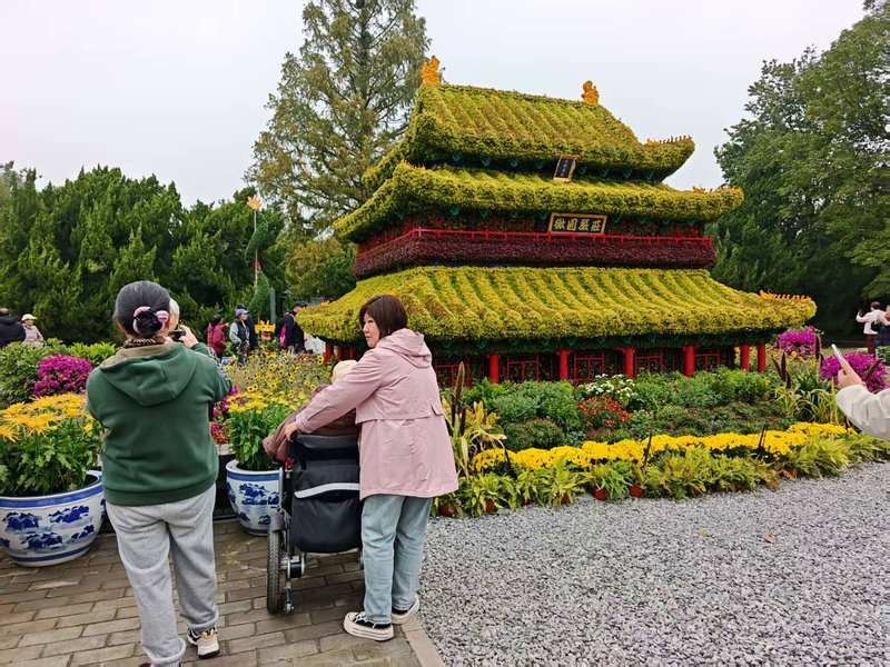 室外景點將菊花與瓊華島、太液池等標志性景觀自然融合,營造“人在畫中游”的詩意氛圍;標準菊展臺按花色、花型陳列精品菊花,盡顯栽培特色;特色品類專區(qū)集中展示大立菊、懸崖菊、塔菊、造型藝菊等特色菊種,同步開展“菊韻百年”主題插花表演,搭配古箏演奏《菊花臺》,讓傳統(tǒng)花藝與古典音律交相輝映。記者看到,公園采用立體花壇再現(xiàn)了消逝百余年的大佛殿,不少游客在此拍照打卡。