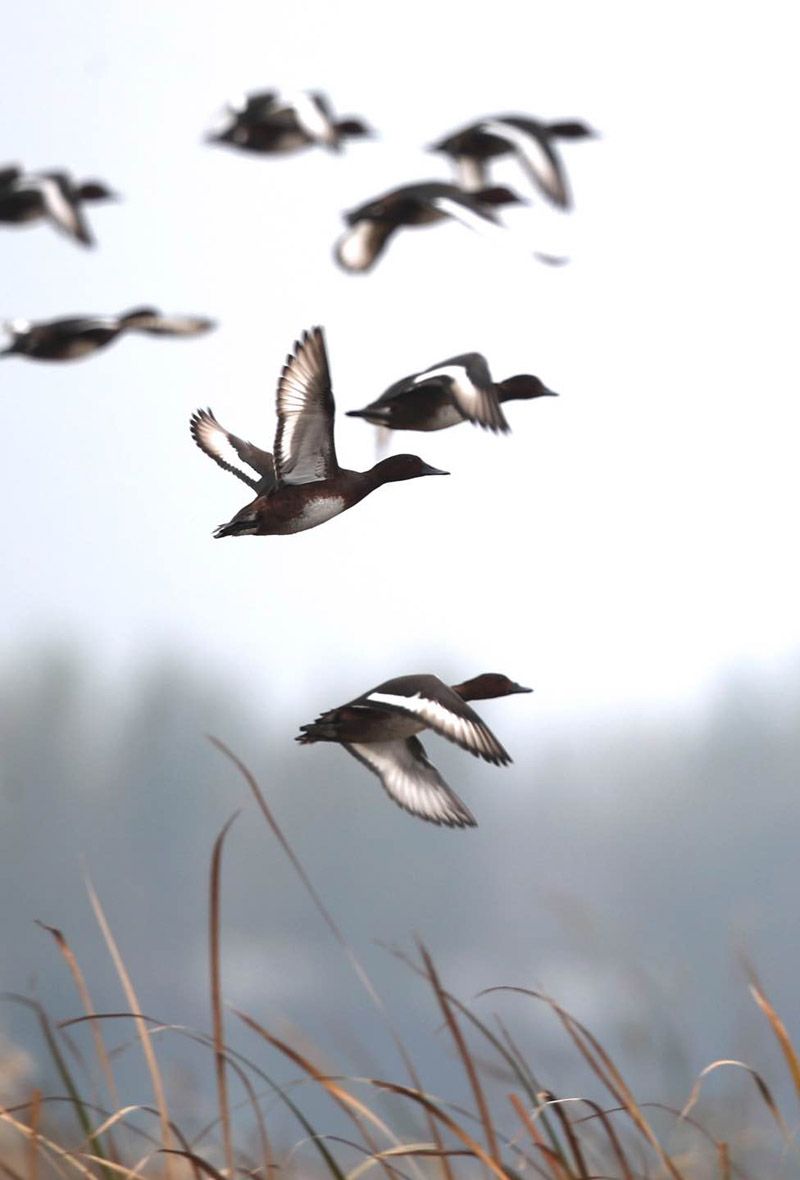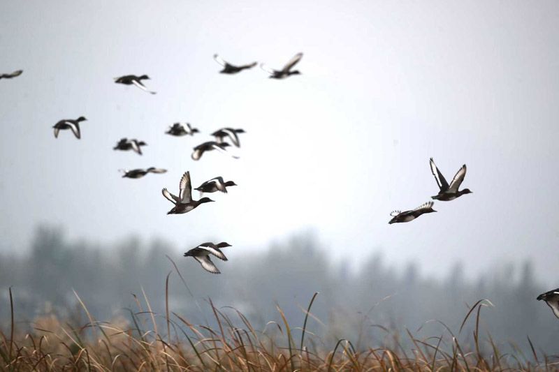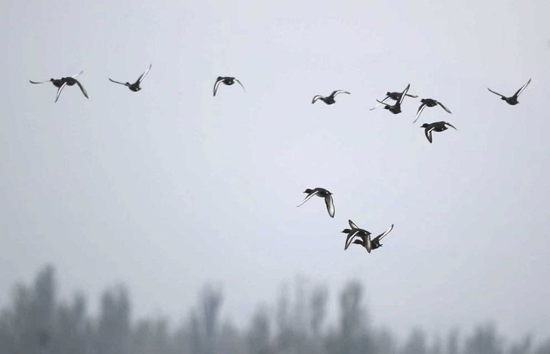 10月27日,北京黑豹野生動物保護(hù)站巡護(hù)隊(duì)員觀測到33只青頭潛鴨飛抵官廳水庫。青頭潛鴨對棲息環(huán)境要求極高,尤其看重水質(zhì),常棲息在水流緩和、水生植物豐富的湖泊、水塘和河流區(qū)域。青頭潛鴨是國家一級保護(hù)動物,也是全球極度瀕危物種。2025年我國記錄到的青頭潛鴨種群數(shù)量為2555只。