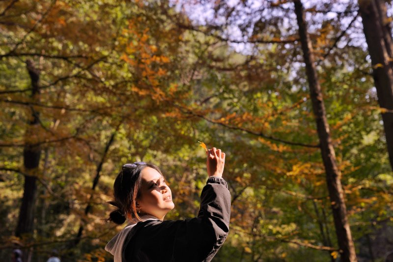 10月28日,國家植物園,游客在水杉林游玩。深秋時節(jié),國家植物園迎來彩葉最佳觀賞期,櫻桃溝景區(qū)成片水杉林褪去翠綠,換上橙紅與金黃交織的盛裝。