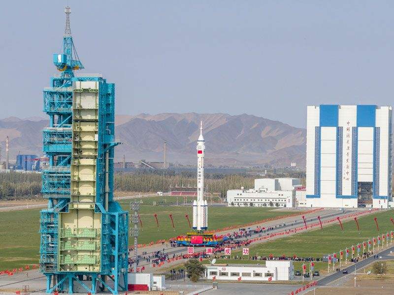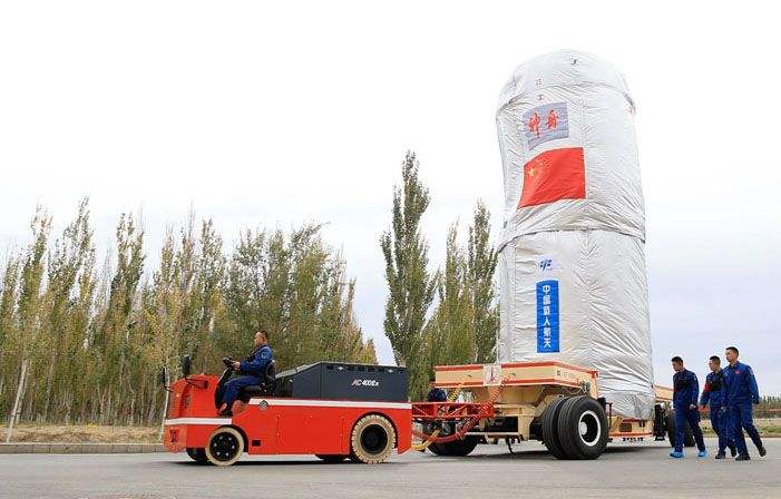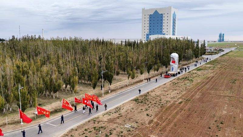 神舟二十一號船箭組合體轉(zhuǎn)運至發(fā)射區(qū)。