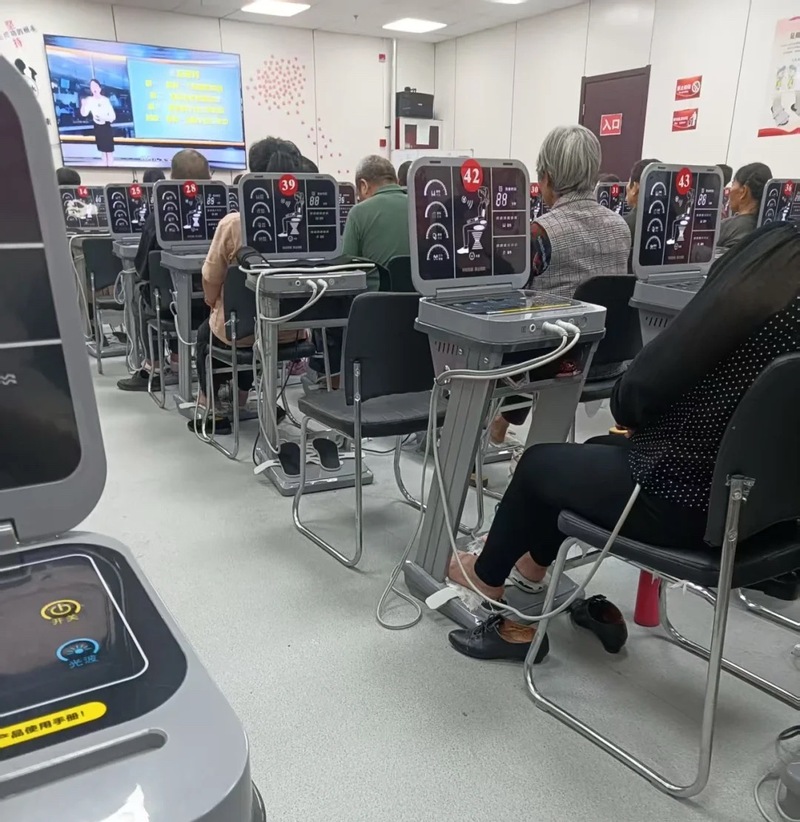 理療店里的老人邊做理療邊學(xué)習(xí)養(yǎng)生知識(shí)。受訪者供圖