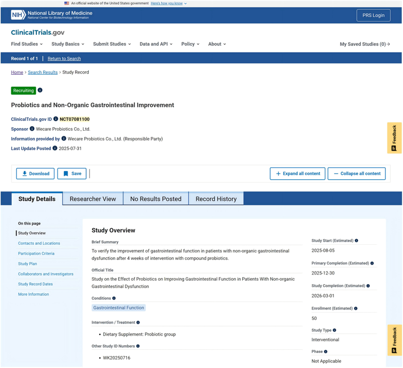 美國(guó)臨床試驗(yàn)注冊(cè)平臺(tái)(國(guó)際臨床注冊(cè)號(hào)NCT07081100)展示