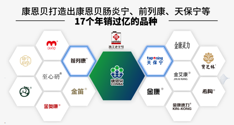 歷經(jīng)五十余年的發(fā)展,康恩貝打造出康恩貝腸炎寧、前列康、天保寧等17個(gè)年銷過(guò)億的品種,斬獲“中國(guó)非處方藥生產(chǎn)企業(yè)綜合排名第8位”等多項(xiàng)權(quán)威認(rèn)證;旗下腸炎寧系列連續(xù)多年榮獲中國(guó)非處方藥黃金大單品稱號(hào),在2024年度中國(guó)非處方藥產(chǎn)品中成藥綜合統(tǒng)計(jì)中位列腸道類第1位,早已成為家喻戶曉的“國(guó)民腸胃藥”。