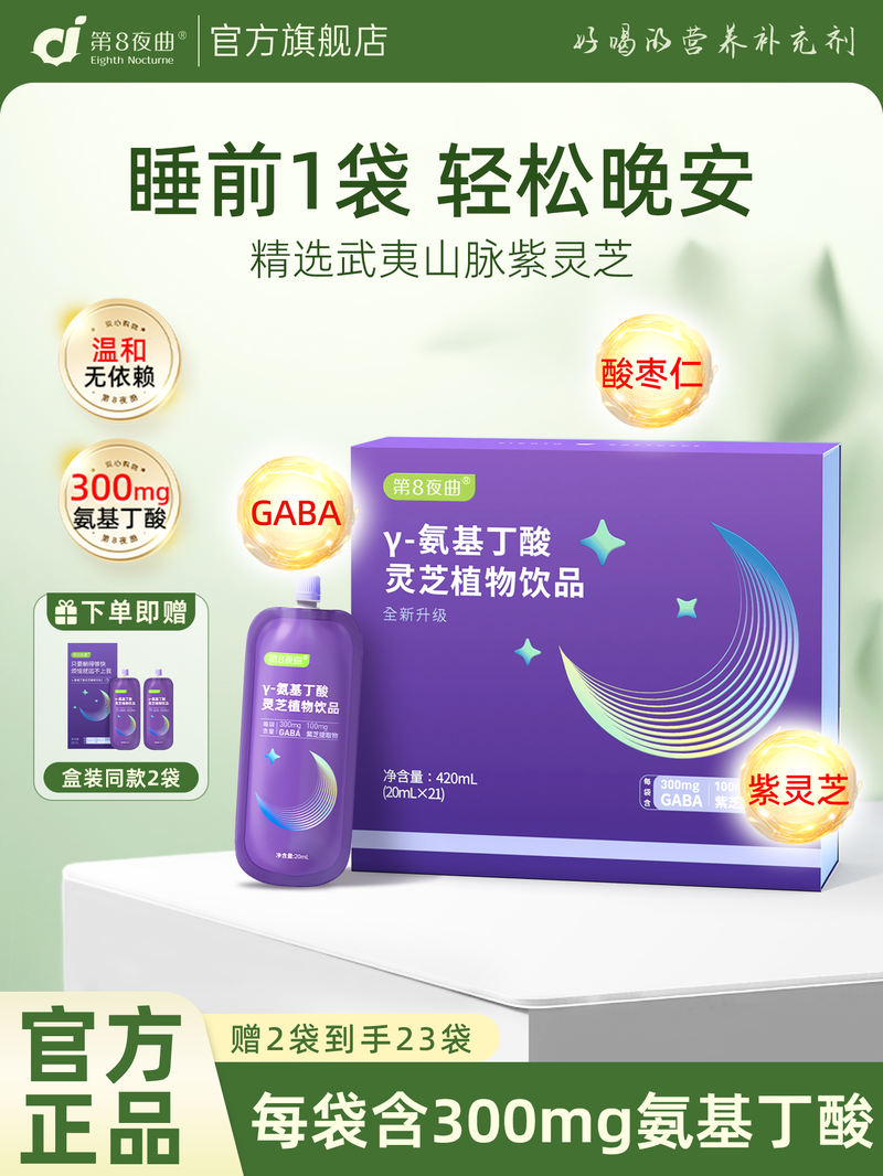 第8夜曲官方旗艦店γ-氨基丁酸靈芝植物飲品產(chǎn)品宣傳圖。電商平臺(tái)截圖