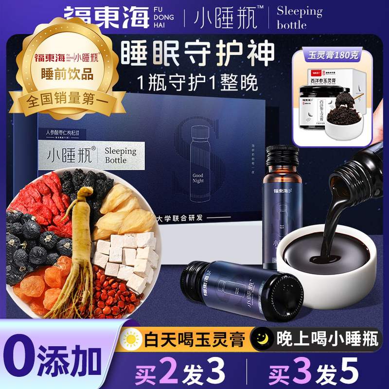 “夜深了,小睡袋陪你酣然入夢(mèng)”,在某電商平臺(tái),一款名為“小睡袋人參酸棗仁枸杞原漿”的產(chǎn)品在產(chǎn)品詳情頁(yè)面介紹稱(chēng),“睡眠有深度,睡醒很舒服”“聽(tīng)100遍搖籃曲,不如喝1袋酸棗仁原液”,這款產(chǎn)品來(lái)自“福東海旗艦店”,在該店內(nèi)還售有小睡瓶、枸杞原漿等產(chǎn)品。
