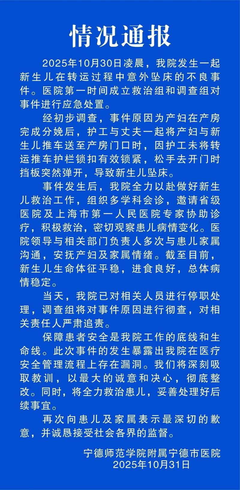 新京報(bào)訊 10月31日,寧德師范學(xué)院附屬寧德市醫(yī)院發(fā)布情況通報(bào),內(nèi)容如下:編輯 辛婧 點(diǎn)贊 +1 微博 微信 我要評(píng)論 登錄 直播 直播中 直播|探訪智能工廠,揭秘硬核越野的誕生之路 895人參與 預(yù) 告 直播|探訪智能工廠,揭秘硬核越野的誕生之路 2025-11-03 14:00 預(yù) 告 直播 | 進(jìn)博經(jīng)貿(mào)“朋友圈”再擴(kuò)容!新京報(bào)貝殼財(cái)經(jīng)帶你云逛展 2025-11-05 14:00 熱點(diǎn) 1 睡眠飲料亂象調(diào)查:普通飲料打擦邊球,宣稱能助眠、幫長(zhǎng)高 4.5萬(wàn) 2 張信哲:我到了“講述一些愛(ài)情之外”的人生階段|人物 4.5萬(wàn) 3 漫長(zhǎng)的爭(zhēng)奪:從騙子手中“搶”回父母 1.9萬(wàn) 4 以臨床實(shí)證打破行業(yè)亂象,康恩貝進(jìn)軍腸胃健康食品領(lǐng)域 1.6萬(wàn) 5 10月制造業(yè)采購(gòu)經(jīng)理指數(shù)為49%,制造業(yè)短期波動(dòng)仍有趨穩(wěn)基礎(chǔ) 1.3萬(wàn) 最新 神舟二十一號(hào)載人飛船發(fā)射取得圓滿成功 1小時(shí)前 神舟二十一號(hào)載人飛船發(fā)射升空 1小時(shí)前 一致魔芋:目前仍以B端業(yè)務(wù)為核心,C端自有品牌建設(shè)尚需投入 2小時(shí)前 鼎智科技:對(duì)智元機(jī)器人、脈塔智能的合作已形成穩(wěn)定訂單供應(yīng) 2小時(shí)前 豐光精密:目前日本子公司已按計(jì)劃逐步投產(chǎn),并形成有效產(chǎn)能 2小時(shí)前 熱議 新聞8點(diǎn)見(jiàn)丨神舟二十一號(hào)瞄準(zhǔn)今日23時(shí)44分發(fā)射;北馬期間部分道路交通管制 漫長(zhǎng)的爭(zhēng)奪:從騙子手中“搶”回父母 商務(wù)部回應(yīng)出口管制:抓好安全才能有更好的發(fā)展 “湘潭大學(xué)宿舍投毒案”罪犯周立人被執(zhí)行死刑 “日入過(guò)千”AI課夢(mèng)碎、紅松凌晨推銷鋼琴課……老人的培訓(xùn)陷阱