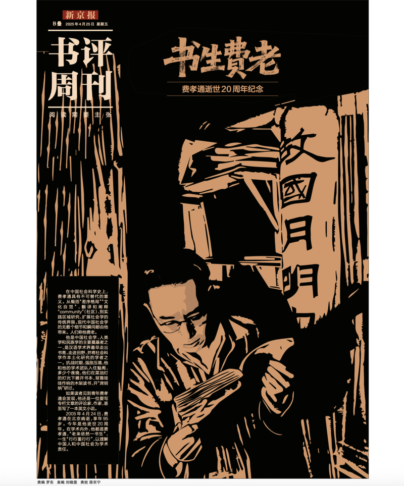 今年是費(fèi)先生逝世20周年。在4月,《新京報(bào)·書評(píng)周刊》特別策劃了紀(jì)念專題《書生費(fèi)老》,所刊文章包括費(fèi)孝通的人生和學(xué)術(shù)、從中國(guó)社會(huì)學(xué)史的角度談費(fèi)孝通的學(xué)術(shù)遺產(chǎn)、從文學(xué)和社科的角度談費(fèi)孝通唯一小說《繭》,以及費(fèi)孝通在魁閣時(shí)期主持的“席明納”。