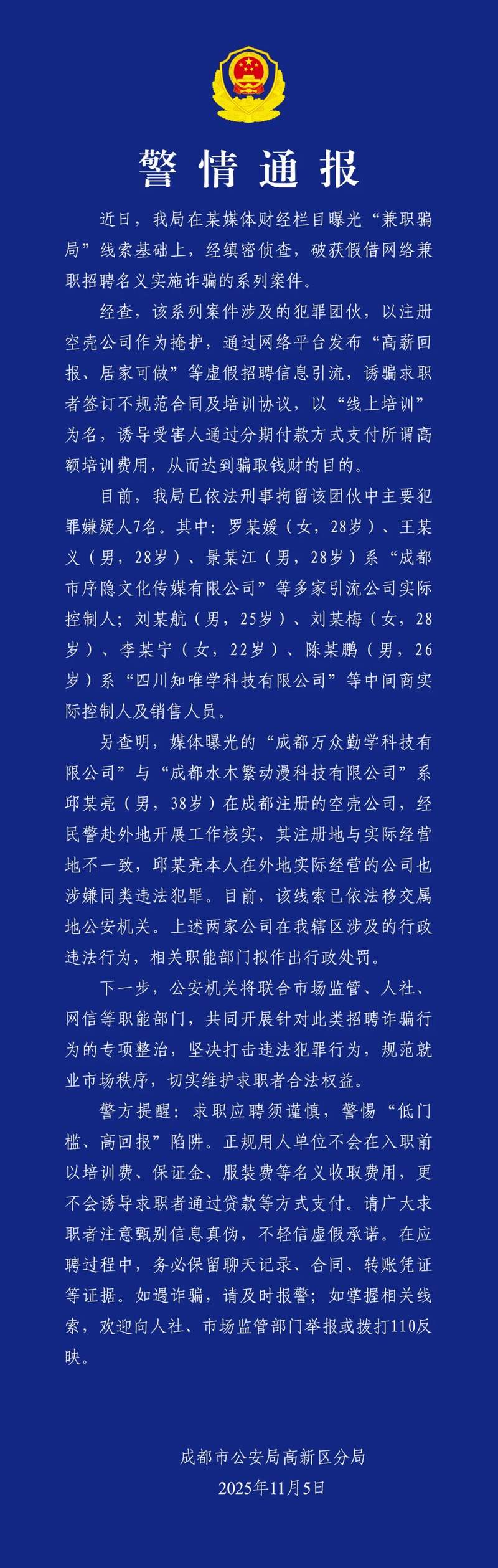 新京報訊 11月5日,成都市公安局高新區(qū)分局發(fā)布警情通報:編輯 陳艷婷 點贊 +1 微博 微信 我要評論 登錄 直播 預告 北京市2025-2026年冬季防滅火工作新聞發(fā)布會 2025-11-06 15:00 熱點 1 助貸擔保亂象調(diào)查:年化超2000%“高炮”再現(xiàn),雙擔保猶在 5.4萬 2 千禾味業(yè)產(chǎn)品包裝全新升級 配料干凈醬油進入消費普及市場拐點 4.6萬 3 “超級月亮”懸掛古都夜空 4.1萬 4 視頻|北京今晚能拍到“超級月亮”嗎? 3.9萬 5 美國聯(lián)邦政府停擺天數(shù)即將刷新紀錄,牽動全球投資者神經(jīng) 1.1萬 最新 美最高法院就政府關(guān)稅政策合法性展開辯論 37分鐘前 八屆進博,“溢出效應”顯著,33家中外企業(yè)共享中國發(fā)展紅利 1小時前 美軍試射未攜帶彈頭的“民兵3”洲際彈道導彈 1小時前 “麗春”改名,要什么“精神證明”?| 新京報快評 1小時前 顧秉林:呼吁加快制定“十五五”智能社會建設(shè)規(guī)劃綱要 1小時前 熱議 阿里高德入局無人駕駛賽道,打造最大Robotaxi聚合平臺 第35屆中國新聞獎評選結(jié)果揭曉 八屆進博,“溢出效應”顯著,33家中外企業(yè)共享中國發(fā)展紅利 美軍試射未攜帶彈頭的“民兵3”洲際彈道導彈 美最高法院就政府關(guān)稅政策合法性展開辯論