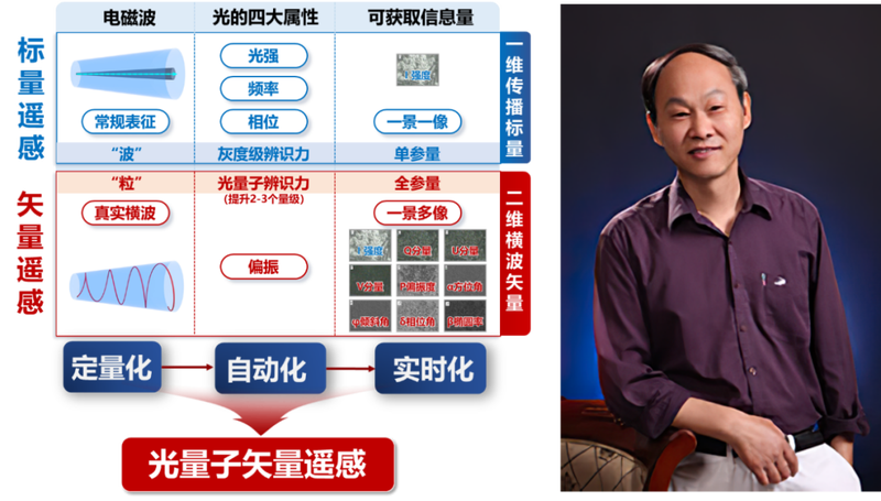 遙感是支撐我國低空經(jīng)濟(jì)和軍事信息化的核心支柱技術(shù)之一。針對(duì)當(dāng)前嚴(yán)重制約其發(fā)展的數(shù)據(jù)多、需求多但有效數(shù)據(jù)少的世界難題,項(xiàng)目組圍繞光量子矢量遙感數(shù)理基礎(chǔ)與對(duì)地觀測關(guān)鍵科學(xué)問題展開攻關(guān),主要發(fā)明點(diǎn)包括: