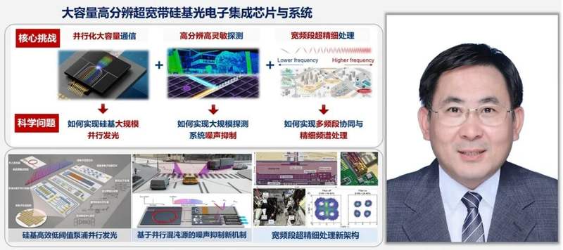 硅基光電子集成芯片憑借低成本、高集成度及CMOS工藝兼容性優(yōu)勢,成為光電子領(lǐng)域的研究熱點(diǎn)。然而,大容量通信、高靈敏探測和寬頻段精細(xì)處理等核心技術(shù)的瓶頸制約了其進(jìn)一步發(fā)展。項(xiàng)目團(tuán)隊(duì)圍繞上述關(guān)鍵科學(xué)問題展開攻關(guān),取得系列突破性進(jìn)展:
