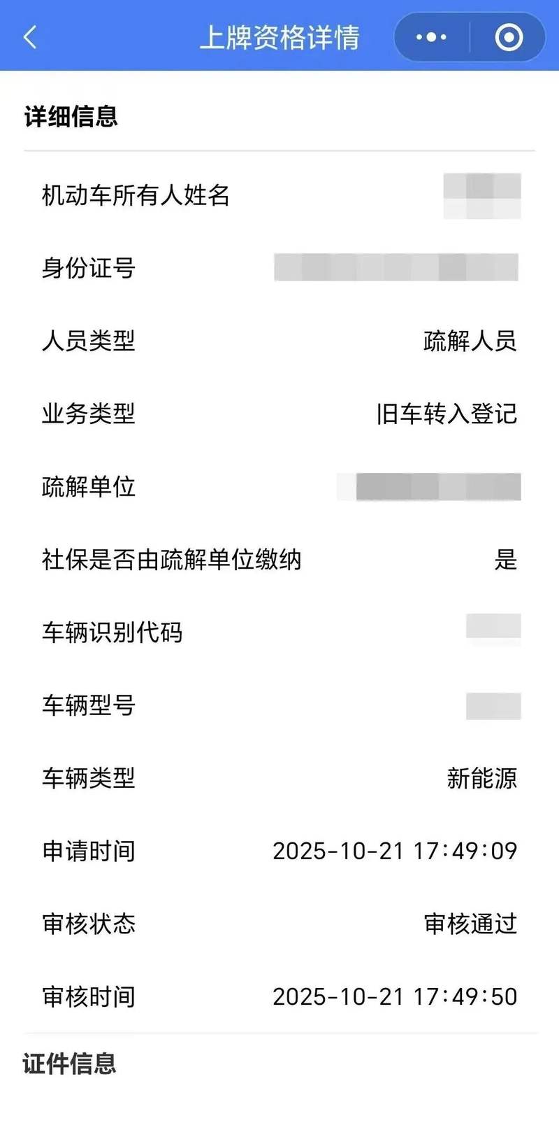 第二步:根據(jù)選擇的人員類型和辦理業(yè)務(wù)類型,填寫車輛信息并提交相關(guān)證明材料(審核情況可在小程序“我的”點(diǎn)擊“上牌資格信息列表”查詢,審核通過后可下載打印“上牌資格證明”)。