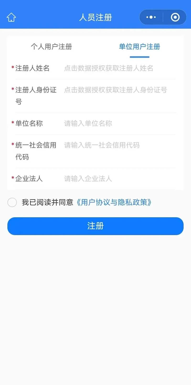 第二步:若已完成雄安數(shù)字身份認(rèn)證,系統(tǒng)將自動(dòng)跳轉(zhuǎn)至注冊頁面→選擇注冊類型(企業(yè)或個(gè)人)→點(diǎn)擊 “獲取姓名和身份證號(hào)”→勾選“我已閱讀并同意《用戶協(xié)議與隱私政策》”,確認(rèn)信息無誤后點(diǎn)擊注冊。