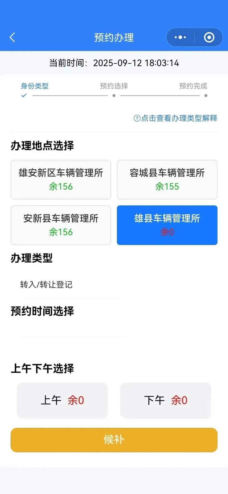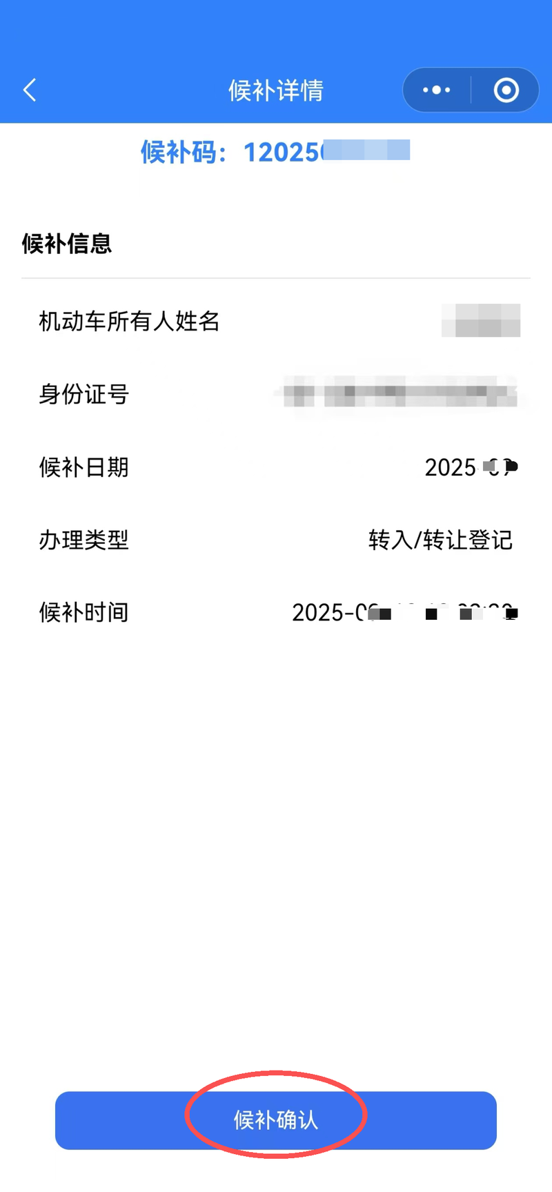A:當(dāng)您選擇預(yù)約的車管所無可用號(hào)源時(shí),可點(diǎn)擊“候補(bǔ)”并確認(rèn)。候補(bǔ)成功后,您將收到短信通知。申請人需要在收到通知后的兩小時(shí)內(nèi),進(jìn)入小程序“我的”→“候補(bǔ)記錄”,找到需確認(rèn)的記錄并選擇相應(yīng)車管所。完成候補(bǔ)確認(rèn)后,即可前往該車管所辦理業(yè)務(wù)。