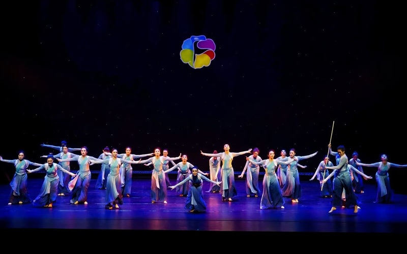 在展演首晚進(jìn)行的中國(guó)舞展演中,15個(gè)群舞節(jié)目先后亮相。舞美燈光下,舞者們時(shí)而踏著八音盒中的旋律,化身為唐朝盛世中的陶俑;時(shí)而身穿群青色傣家少女服飾,翩躚于幽靜山水間;時(shí)而化身伎樂(lè)飛天從壁畫中蘇醒,羽衣翩躚、綢帶飄舞。