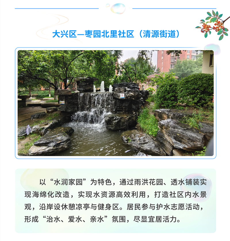 大興棗園北里社區(qū)以“水潤家園”為特色,通過雨洪花園、透水鋪裝實現(xiàn)海綿化改造。