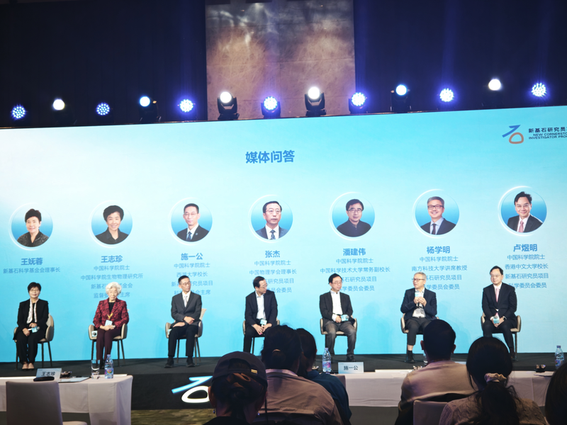6位院士在新基石研究員名單發(fā)布會(huì)現(xiàn)場接受記者提問。新京報(bào)貝殼財(cái)經(jīng)記者 羅亦丹 攝