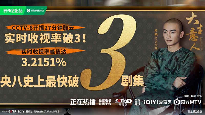11月25日,由中央電視臺、愛奇藝、海棠果影業(yè)出品,海棠果影業(yè)制作,張挺編劇并執(zhí)導(dǎo),陳曉、孫千領(lǐng)銜主演,羅一舟、成泰燊聯(lián)合主演,黃志忠、李純特邀主演,朱亞文、向涵之、吳樾特別出演的古裝人物傳奇劇《大生意人》正式登陸CCTV-8與愛奇藝。這部聚焦晚清商海沉浮的作品,以小人物逆襲為主線,在古裝傳奇的創(chuàng)作框架中注入現(xiàn)代思考,既實現(xiàn)了“鈔級逆襲”的爽感表達,更憑借深厚的文化底蘊與創(chuàng)新敘事以及非常高的情節(jié)密度,為同類題材創(chuàng)作提供了新范式,開播即引發(fā)市場與口碑的雙重?zé)岢?,收視與熱度數(shù)據(jù)尤為亮眼。