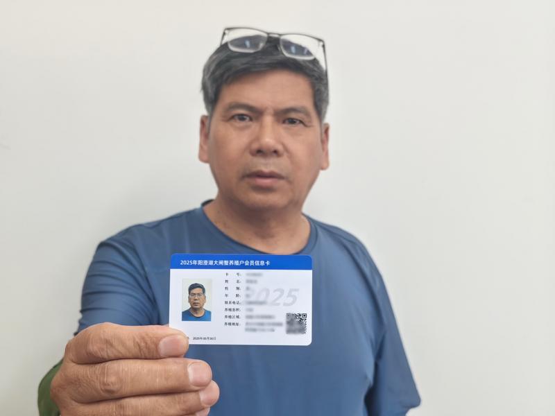 養(yǎng)殖戶通過人臉識(shí)別后獲得2025年陽澄湖大閘蟹養(yǎng)殖戶會(huì)員信息卡,一戶一卡。