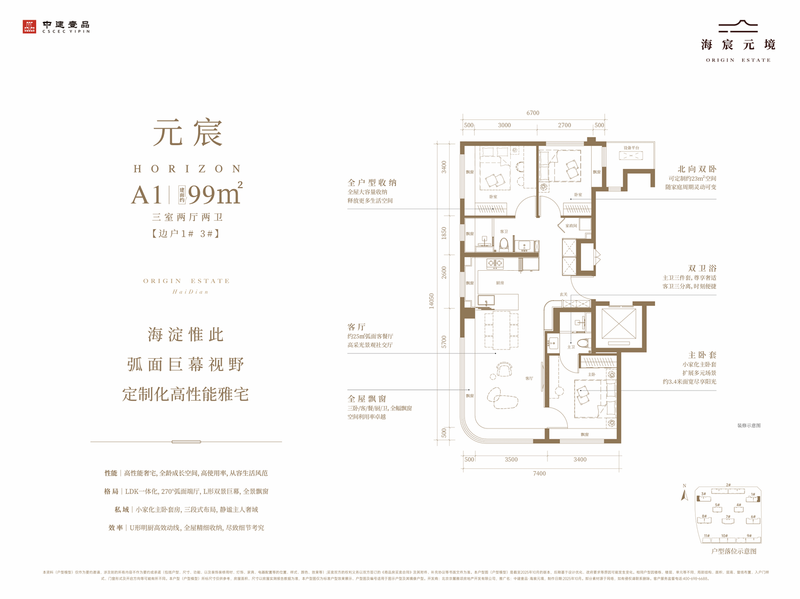 99平方米戶型均為端戶設(shè)計,約93%的高使用率備受剛需青睞。270°弧形轉(zhuǎn)角飄窗加持,采光與視野雙重升級;3.5米面寬客廳搭配LDK一體化布局,打造出約25平方米開闊活動公區(qū),滿足日?;有枨?。
